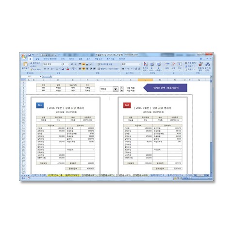※ 구입하시면, 급여명세서(F1) 시트는 노출되어 있고,